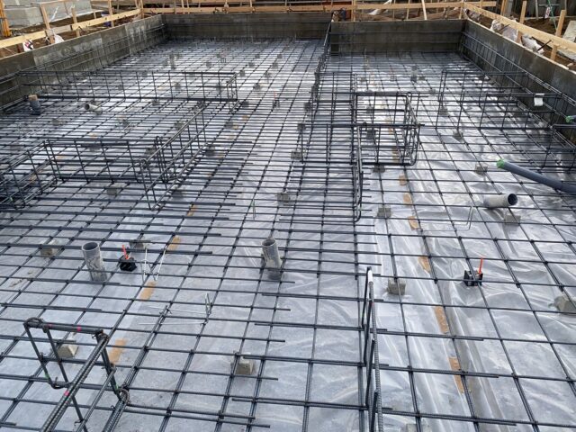 基礎の骨組みに関わる鉄筋工事。基礎工事において最も重要な工事です。